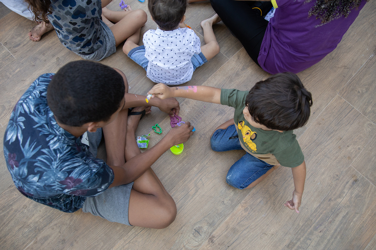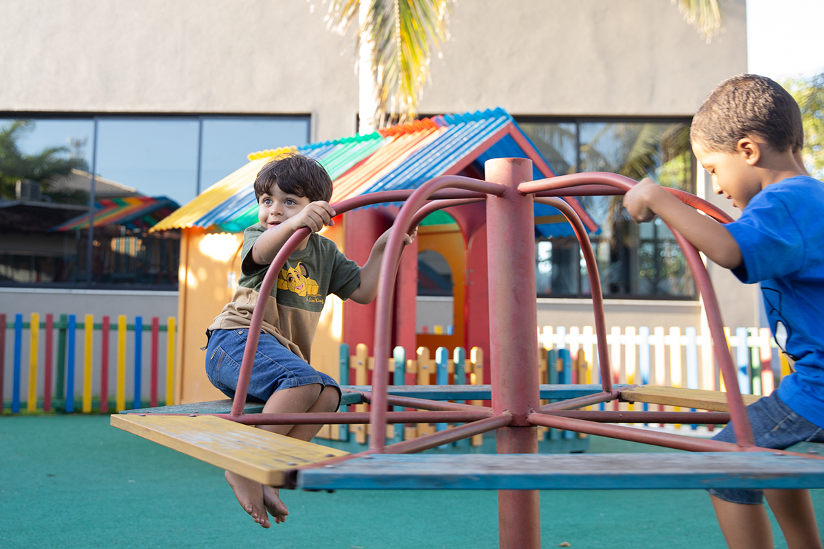 Leo acompanhou seu irmão João Eduardo nas brincadeiras e não se intimidou com a criançada maior!!